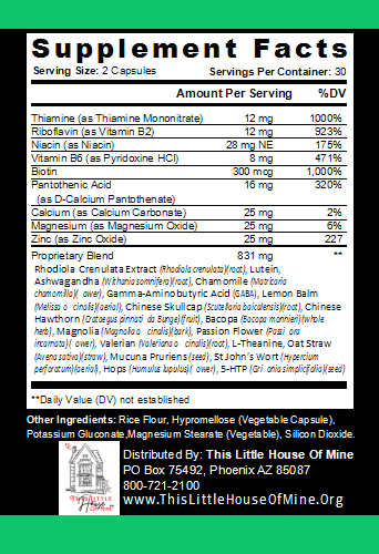 Peace and Calm Anti Stress Formula, contains a specific combination of vitamins, minerals and natural herbs. We selected ingredients which help provide effective calming and relaxing benefits.* Deep Calm includes: Biotin, Magnesium, Zinc, Vitamin B's which are important in helping to maintain nerve functions and Ashwagandha, GABA, Lemon Balm, Bacopa, Chamomile tea to help relax the mind and body.*
